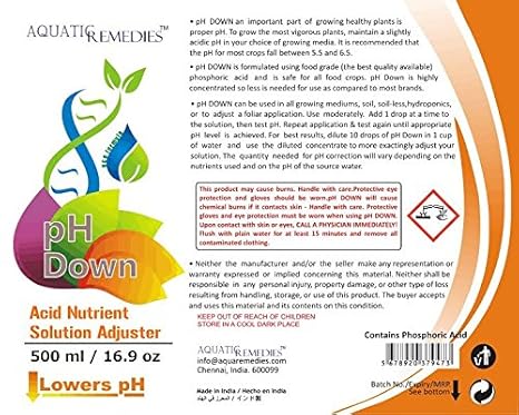 Aquatic Remedies Ph Down Food Grade Ph Nutrient Solution Adjuster For Hydroponics And Aquaponics 500 Ml Amazon In Garden Outdoors